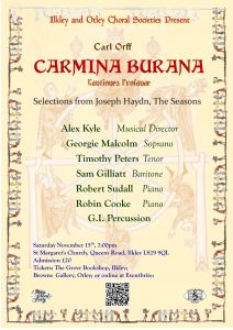 | 7pm, 15th November 2025 | St Margaret's Church, Ilkley | Orff - Carmina Burana |